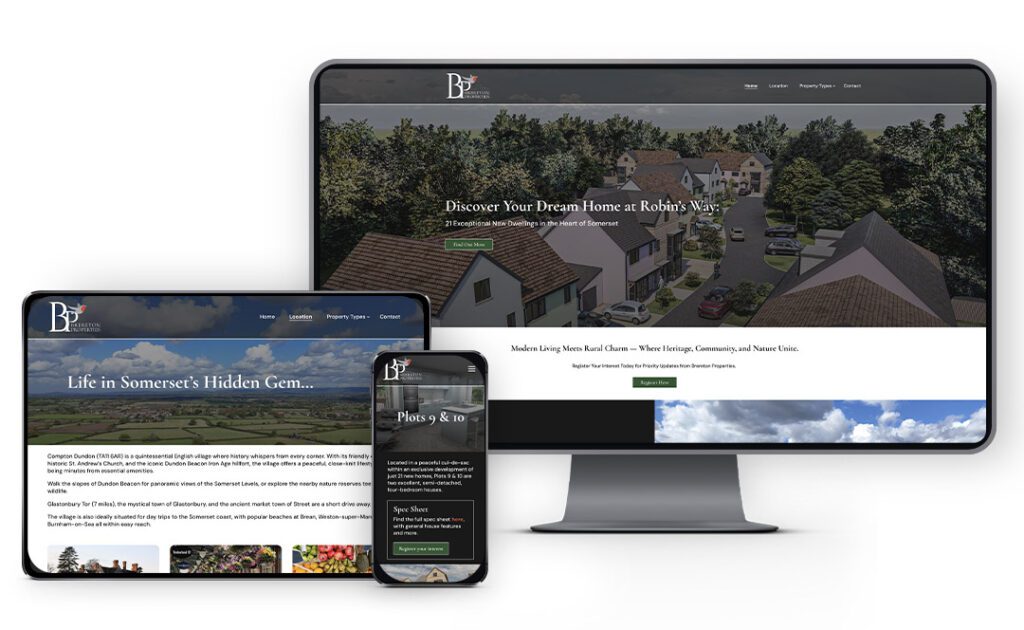 We’re excited to announce the completion of our project for Brereton Properties, a Somerset-based property developer. This wasn’t just a website build, but a complete marketing package. We helped Brereton Properties with their branding and logo design, site signage, a fully responsive website design and captured ariel footage of the local area with our professional drone videography services.